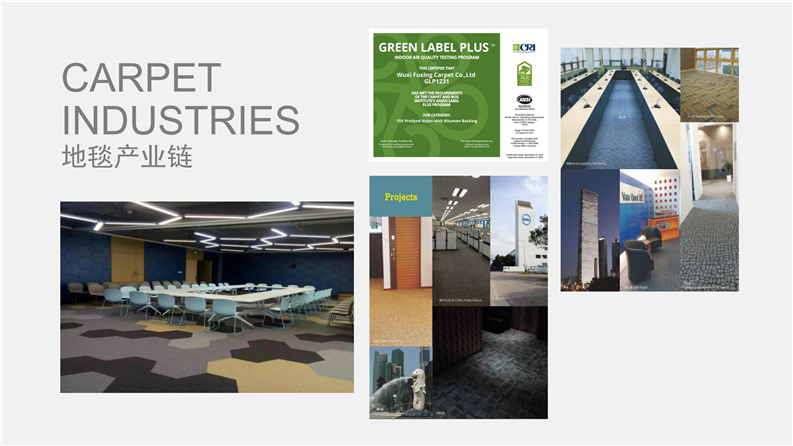 企業擁有眾多國際領先的先進生產設備,其中包括德國威爾頓電腦提花地毯生產線、英國一體化后整理設備、美國多套簇絨地毯生產線、奧地利Zimmer高清印花生產線、BCF滌綸地毯長絲生產線,年產量可生產各類地毯1000多萬平方米,企業自主專利技術研發生產“天絲”特種長絲纖維核心競爭產品,開發多款獨特的高質量產品,具有抗老化、永久性阻燃、耐磨、耐菌、耐污染、持久如新及超長使用壽命等多種優勢性能,是普通傳統纖維絲所無法比擬的,公司通過ISO9001:2000質量管理體系、ISO14001:20004環境管理體系、GB/T28001-2001職業健康安管管理體系認證等,以及先進的生產管理水平,確保地毯產品品質的穩定性和可持續性質量保證。